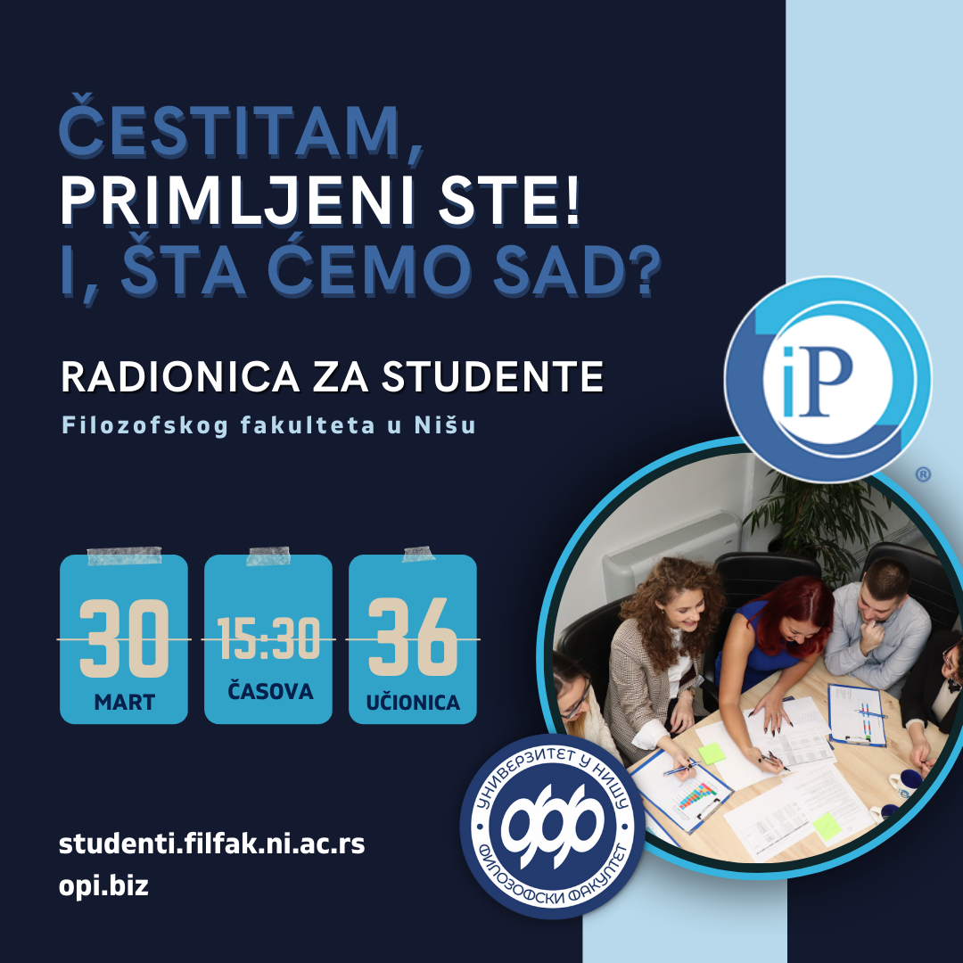 Студираш на Филозофском факултету у Нишу и желиш да своје знање и вештине поделиш са другима? За себе можеш рећи да си комуникативна, вредна, стрпљива и амбициозна особа? Онда си права особа за програм „Студент-ментор”!