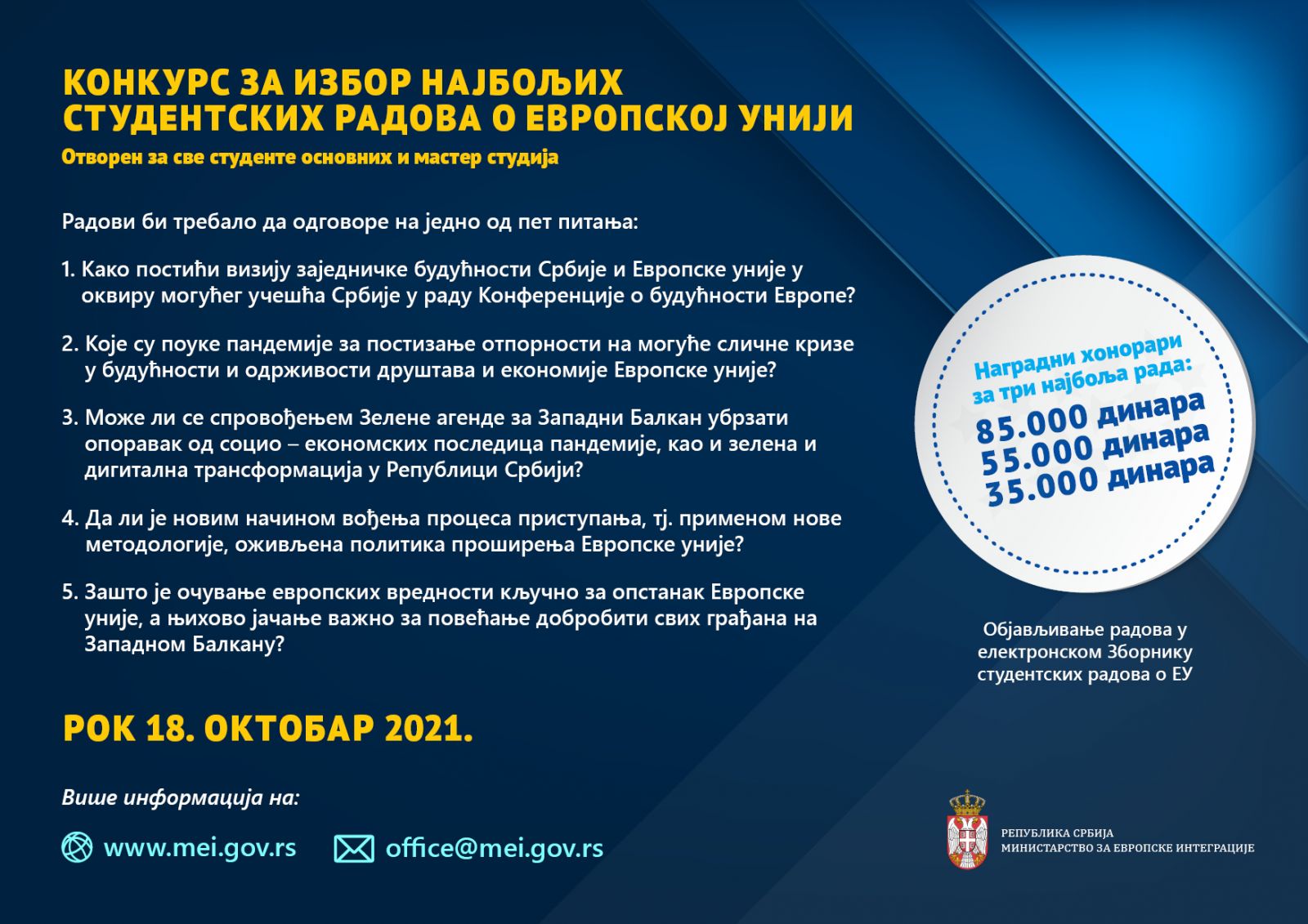 Молимо вас да анкету попуните до 15. јуна 2021. године.